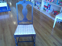 I LOVE Chairs! Can’t get enough of them. And, I nabbed this one and another similar one for $5 each. I painted one of them white one and shabby chic’d it and got a yard of charming and whimsical Beatrix Potter fabric to reupholster the seats, seeing as how they were going to be stored at Blue Chair Children’s Bookstore.