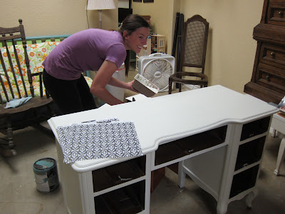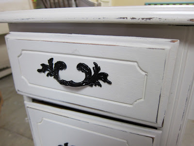 I got this beauty last Sunday from one of my great picker tipsters (Dad)! He saw this on the curb as a yard sale leftover piece so I was able to negotiate a great price with the owner. We spent the better part of today repairing, sanding, painting and decopauging (We, meaning my awesome store girls Macy, Patti and my girl Sammi).