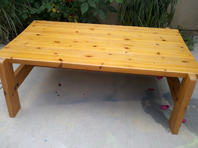 Sanding was in order and I wanted to really distress this one so that the natural pine wood would show through the layers of paint. I was not intending to paint the base of this table.