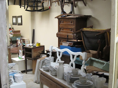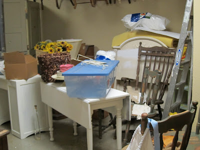 We moved the portable wall of doors up about five feet so that there is more workspace for projects in the back and a bigger area to show case some of the unfinished furniture pieces for custom work. Unfortunately, this is what we have: