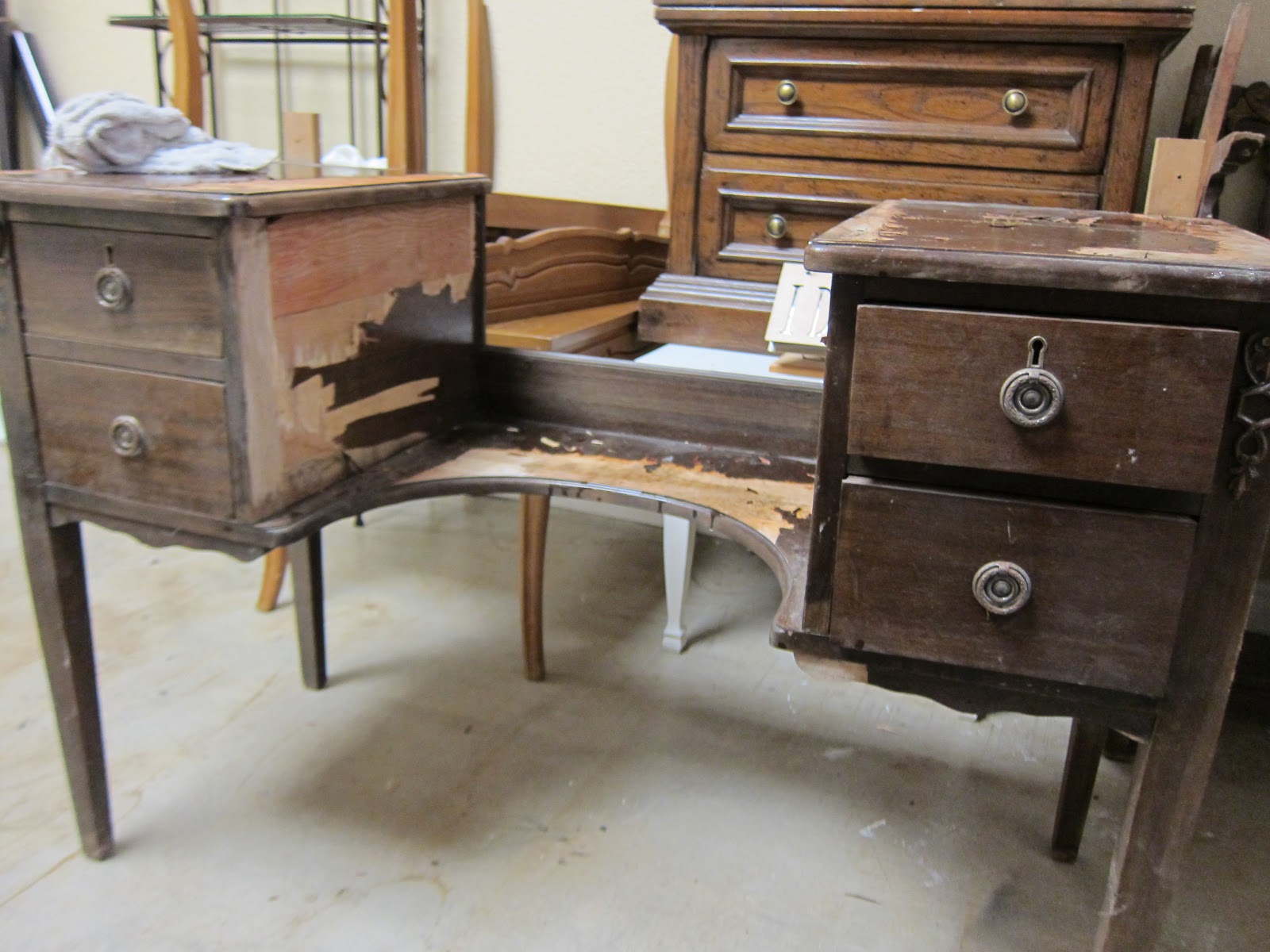 It is a very old piece of furniture. When I acquired her, she was in wretched condition, so much so that I even considered dumping her.