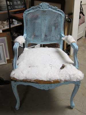 An awesome French style cane back chair I’m fixing up to keep. Stripped down, de-upholstered, painted and in need of some heavy distressing, antique glazing and new upholstery. I can’t wait for this reveal!