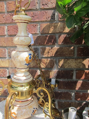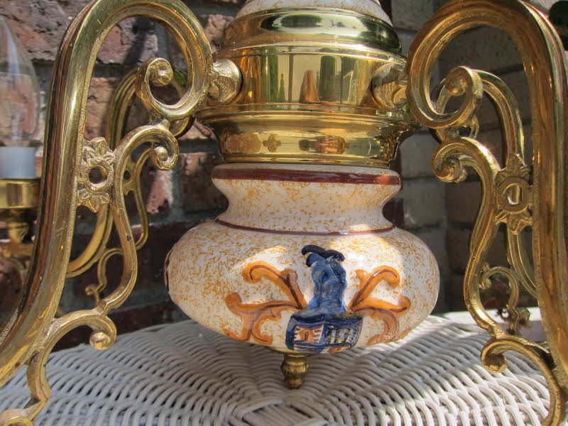 No, not that wicker stool. The chandelier sitting on top of the wicker chair! A true treasure. Besides the fact it is just plain cool (and completely vintage looking), it has a history!