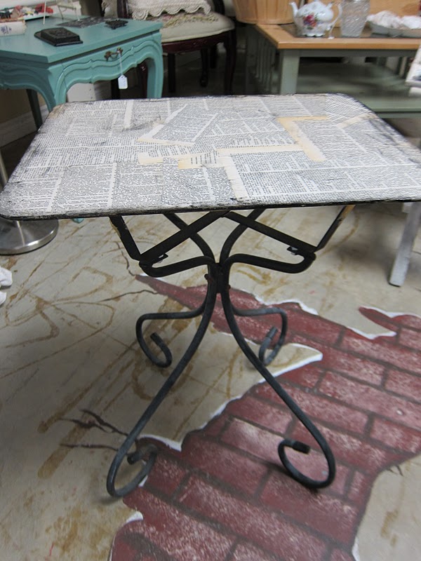 One of the most challenging parts of opening a store has been the lack of “kid appropriate” space for my oldest to help me with projects! One of my most successful behavior modification strategies was rewarding Sammi’s good behavior with a piece of furniture to paint. Splattering paint all over the driveway at home was one thing, but doing it in the store…not gonna work! So, while we are in the store, I let her help me with decopauging projects.