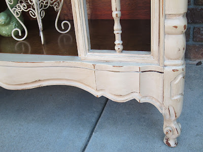 I left the original stain on the top and polished it up because it was in really nice shape as-is. The base, however I painted a light beige and gave a nice dark walnut antique glaze. I left the inside the same wood tone as the top because I thought it added a touch of elegance and debth.
