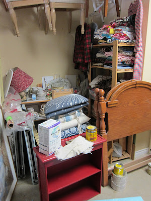 Everything in my “back room…” that is, behind my portable wall of doors becomes a dumping ground. It is a dumping ground for furniture that gets donated, for excess inventory, holiday decorations, supplies, sand paper, toys, clothes, food. You name it! It’s not that different from one of those disgraceful closets at your house.
