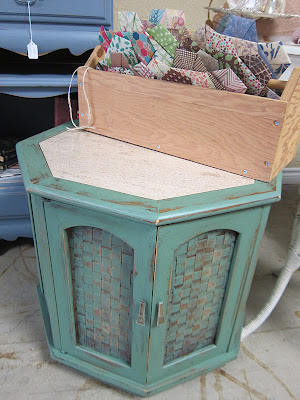 Coordinating side tables with marble…or maybe granite tops. Lots of storage in this one above. The inside is completely hollow!