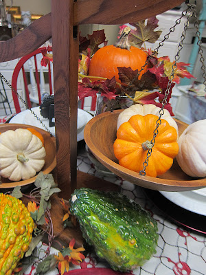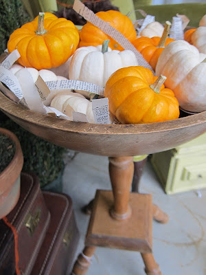 As I flitted around the store today, re-arranging things here and there, I was really enjoying all of my fall decorations. So, I thought I’d share some pictures of quick and easy (and inexpensive) centerpieces that transformed my space into a festive fall scene. Enjoy!