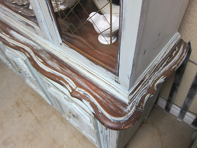 A great French style hutch with curvy legs and fabulous detailing. Not wild about the gold on the glass but we’ll live with it.