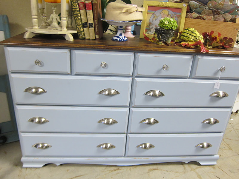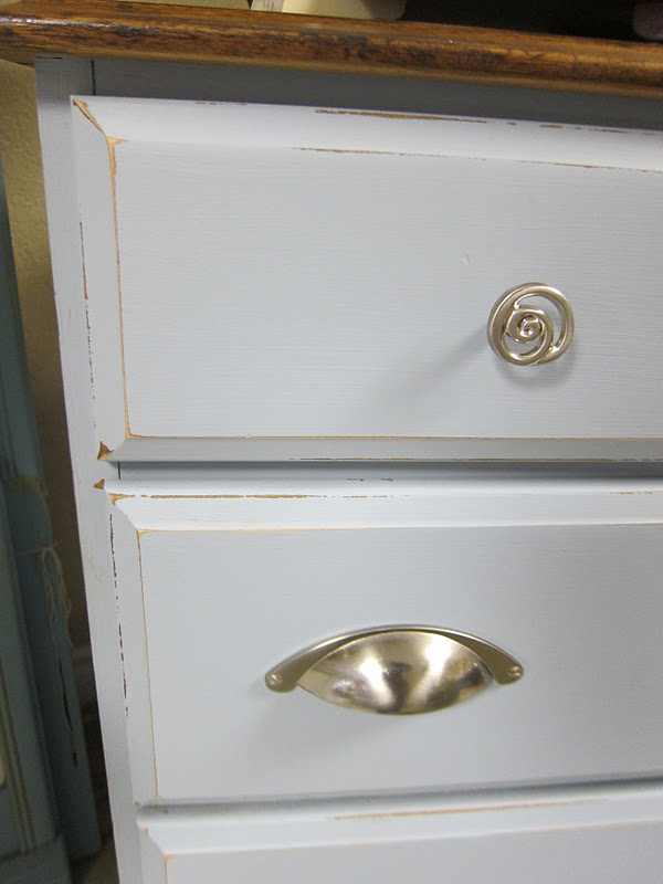 And, I brought out this dresser last week, but it was missing the finishing touch of new hardware. I got the hardware this week, so here it is finished and ready to move into someones bedroom.