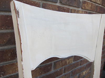 I had Macy paint both of these chairs white. I added some medium distressing and gave the entire chair a light antique glaze to darken the white and add some depth.