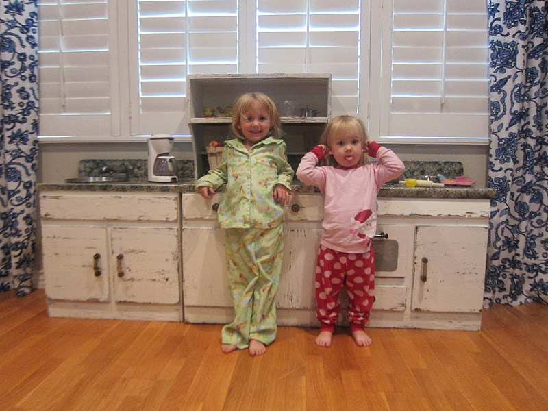 I’ve been so excited to post about this play kitchen that my girls got for Christmas from Santa. In fact, there is too much to write about in just one post, so I am going to do it in two postings. One about the kitchen itself and the other about the redo of the faux granite counter tops.