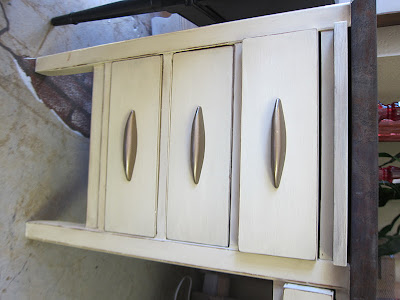 We kept the original hardware and added an antique glaze to the paint to add some texture and depth, and this is the end result.