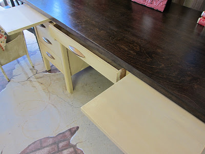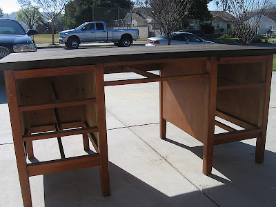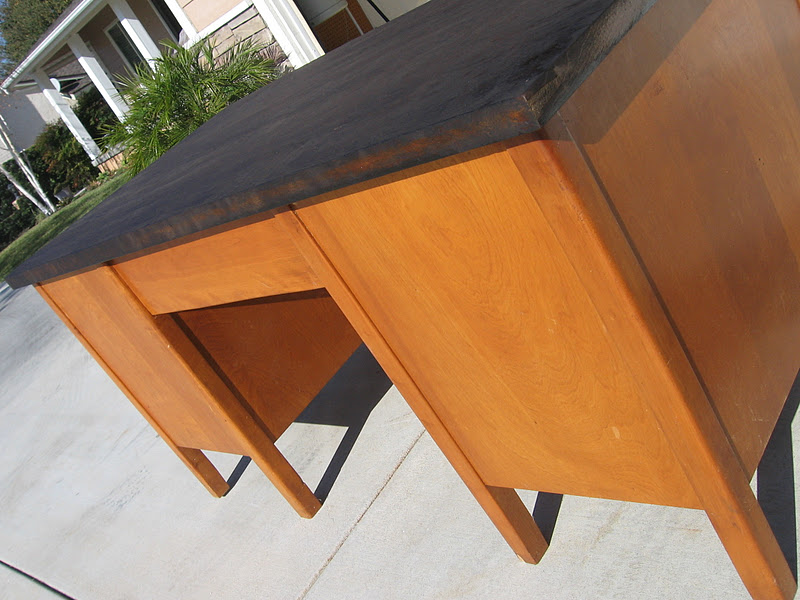 This gorgeous executive desk was given to me by an old high school friend! It was a great piece of furniture. Solid wood, dove tailed drawers that slide very easily.