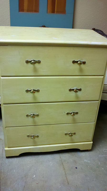 The weird hardware on the dresser left three holes where each knob went so I had to fill in the extra holes. I painted the whole piece in ASCP Cream.