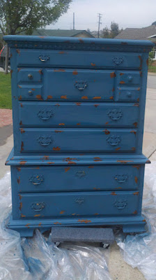 12 minutes later, I had a fully painted dresser and Vaseline all over my camera lens. Seriously, it only took 12 minutes to paint the BEAST!