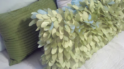 The comforter set was the most expensive part of the new room at $79.99 for one of those bed in a bag sets from Home Goods. It came with the two shams and three throw pillows. I splurged on the fluffy green pillow, which was $16.