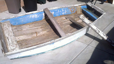 I turned this boat into a bookshelf so took out the old seat, which just so happened to be the perfect size for my wooden sign.