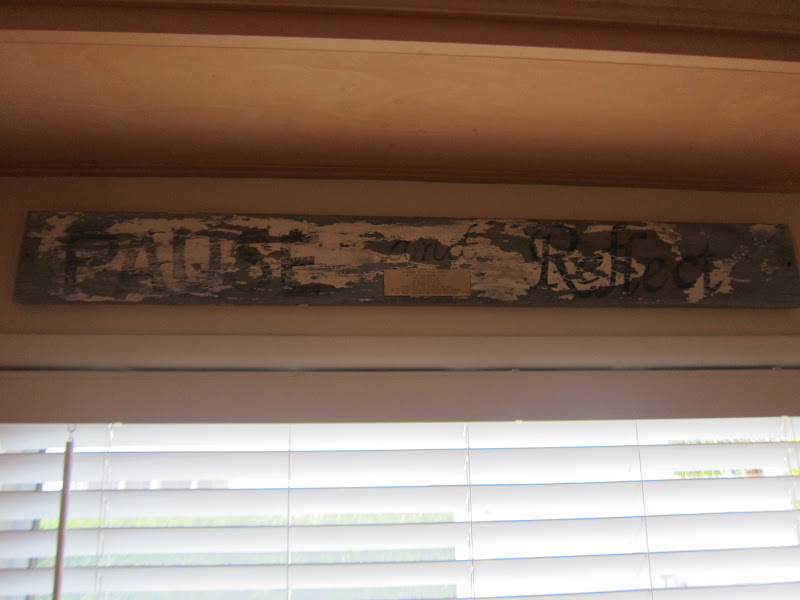 The “something that I had in mind” was for a blank spot just above my kitchen sink. I’ve been wanting a reclaimed wood sign to hang up there. But, I was stuck on two things: I didn’t have any reclaimed wood and I didn’t know what the sign should say. That is, until I found inspiration in the dolphin plaque…and the old boat.