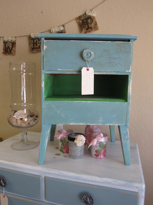 The girls gave me some inspiration for this little side table during the workshop yesterday. It is painted Provence with Antibes as the accent color. Edgy, right?