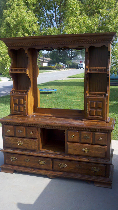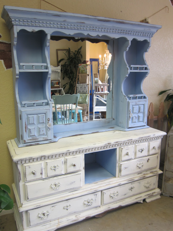 This hideous, beast of a piece. I HATE HUTCHES! I hate painting hutches and usually trash them and just keep the bases. But, for this piece I wanted the hutch for a new paint display.