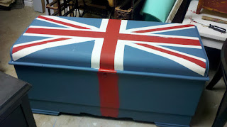 This seemed to be the perfect piece to paint the British flag. It’s big enough to make a statement, but still an accent piece and shouldn’t dominate any one room.