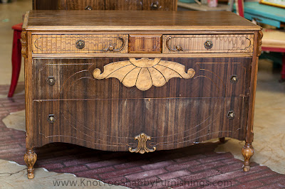 To start, this before and after of a gorgeous antique dresser that I bought from New Unto Others at the Bazaar.