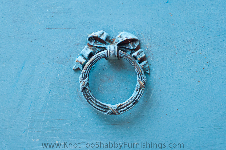 A lot of older piece have delicate knobs or handles that have teeny tiny nails attaching them to the wood in addition to the actual screw. While, you can remove them, the process often damages the hardware itself. In that case, if they are all there, I paint over the knobs and add touches of distressing around it so the original metal shows through the paint.