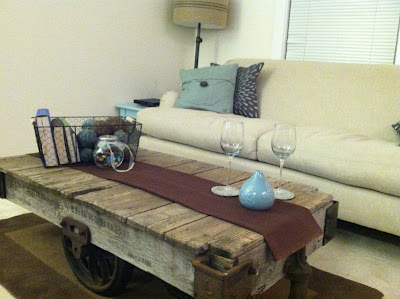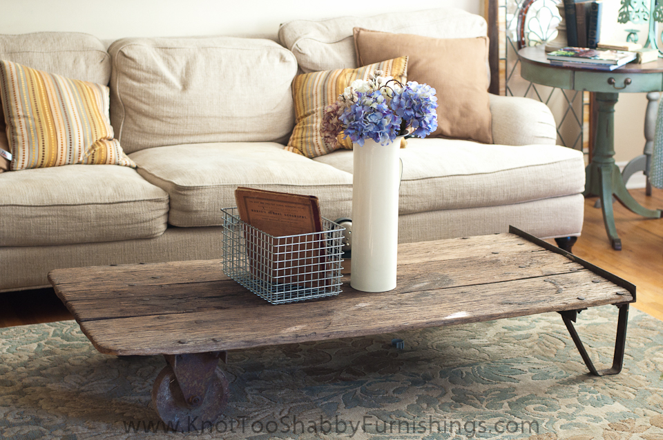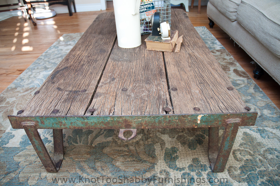 My wish list of late has included a warehouse cart.  Back in the day, before forklifts, warehouse workers would use hand constructed carts to move objects and inventory from point A to point B. They are made with durable wood planks and extremely heavy cast iron frames with big wheels. Awhile back, Pottery Barn and Restoration Hardware started making replication pieces to be “re-purposed” as coffee tables. You can only imagine how much they cost…in the thousands range.