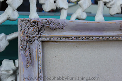 The base coat is painted in Paloma with a smattering of Emile on top. I distressed it down to the gold and added a heavy coat of dark wax to settle in all of the detailing!