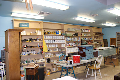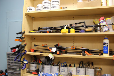 Clamps in every shape and size. There have been times when I’ve gotten to the store after my dad has spent a few hours here and there will be all manner of furniture lined up on the tables that have been glued and clamped. If its been a productive day, every single one will be in use!