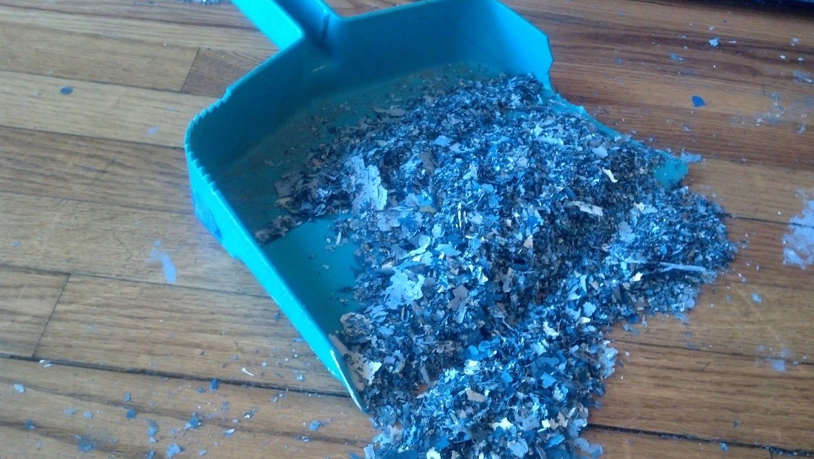 The mess of chipping paint after five coats! I’m going to be seeing blue chips for months!
