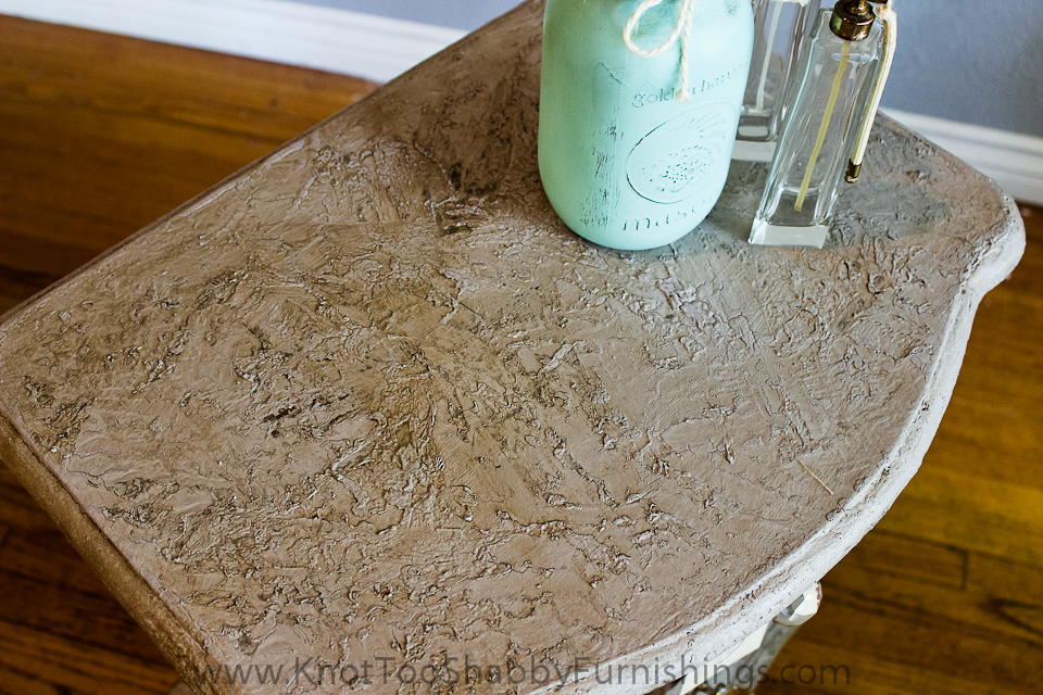 For this piece, it added a rustic component which in some ways contradicted the very dainty and feminine lines of the nightstand.