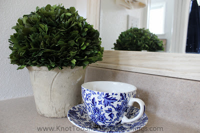 The real splurge was the preserved Boxwood trees I picked up from Home Goods! I got a set of two of them for $50 in a cute chicken wire basket.