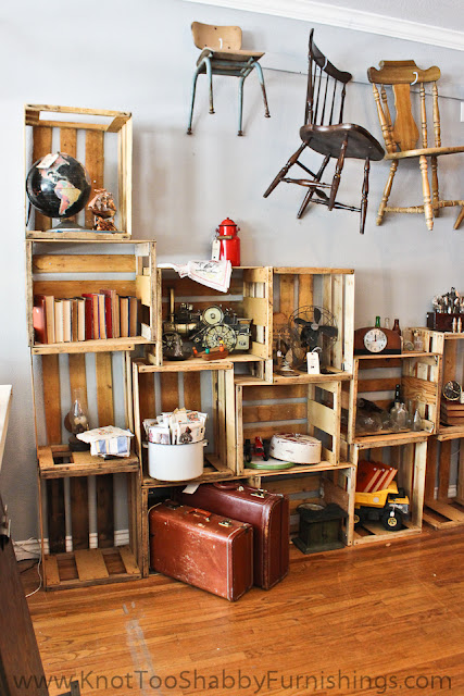 At the shop this week, I am working on creating a permanent shelving area to display the various pieces of home decor and collectibles that we come across. I’ve been keeping an eye on crates on craigslist and figured I needed about 40 of them to create some shelving.