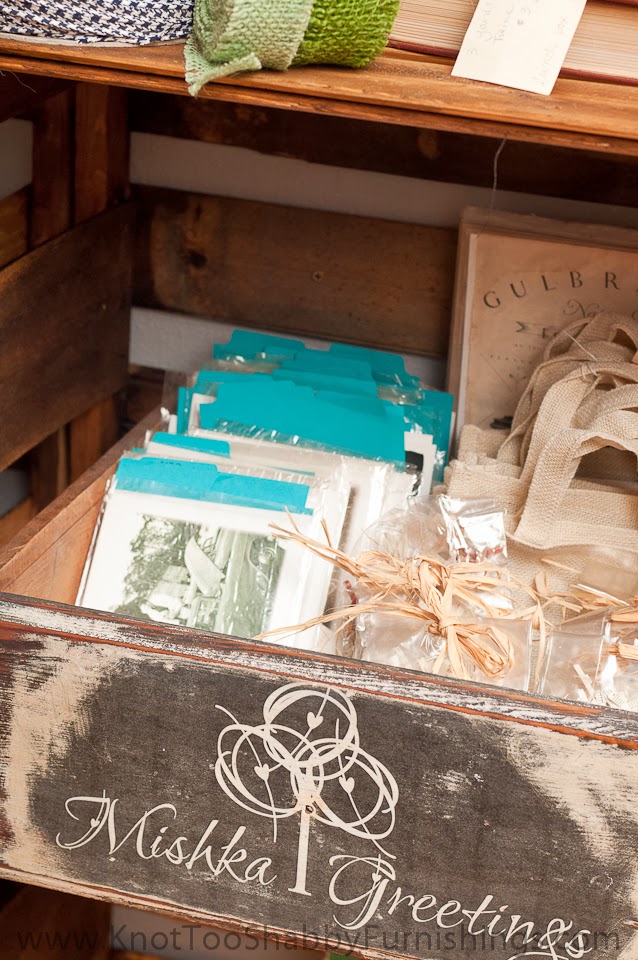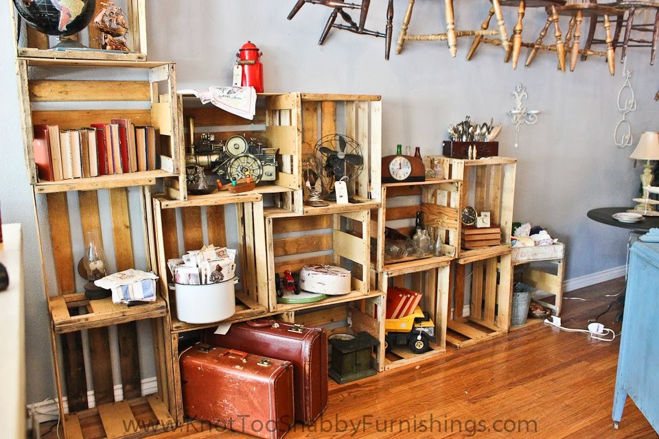 I re-stacked them in a more symmetrical pattern and attached them to the back wall of the store to display all of our more crafty items.