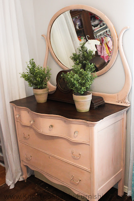 Hi, I found you on MMS. I love that style of furniture and think the pink looks so pretty. Great Grandma would surely be pleased with this transformation!
